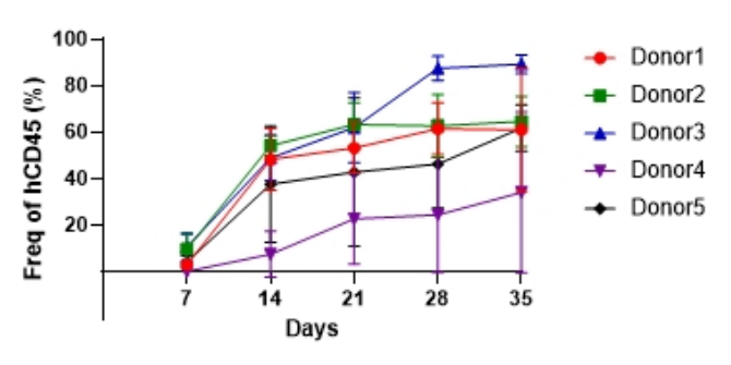 ²ÉÓò»Í¬·ÖÀëÅú´ÎµÄPBMC£¬Õë¶Ô²»Í¬µÄÃâÒßȱÏÝСÊóƷϵ£¨NOG¡¢M-NSG¡¢NCG£©Öؽ¨×öÁË´óÁ¿É¸Ñ¡¡£ÊµÑéÖжԽÓÖÖPBMCºóµÄÃâÒßȱÏÝСÊó½øÐÐÁ÷ʽ£¨hCD45¡¢hCD3¡¢hCD4¡¢hCD8¡¢mCD45£©¡¢ÌåÖØ¡¢GVHDµÈ³ÖÐø¹Û²âÖÁµÚ35ÈÕ£¬ÎªºóÐøµÄdonorÌôÑ¡Ìṩ³ä×ãµÄÊý¾ÝÖ§³Ö¡£