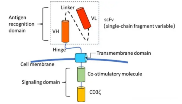 CAR·Ö×ÓÊÇÄ£¿é»¯ºÏ³É£¬ÓɰûÍ⿹ԽáºÏÓò¡¢½ÂÁ´Çø¡¢¿çĤ½á¹¹Óò¡¢°ûÄÚÐźŽṹÓò¡£ÆäÖаûÍâµÄ¿¹Ô½áºÏÓòµ¥Á´¿É±äƬ¶ÎscFvÓɿɱäÓòVH¡¢VLºÍÁ¬½Ó×Ólinker×é³É£¬Æä¸³ÓèCARϸ°ûÕë¶ÔÌØ¶¨¿¹ÔµÄʶ±ðÄÜÁ¦¡£