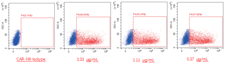CAR-NKϸ°ûÑôÐÔÂʼì²â½á¹ûÏÔʾ£º¼«µÍŨ¶ÈG4S linker£¨905-5£©Rabbit mAb ( 0.37 ug/mL) ¼´Äܳä·Ö¼ì²âCARÑôÐÔÂÊ¡£
