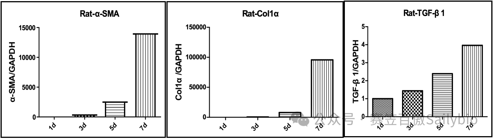 SD大鼠分离的肝星状细胞,α-SMA、Col1α、TGF-β1基因在细胞活化过程高达1万倍增长。