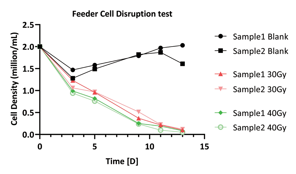 样本1和样本2分别使用30Gy和40Gy的X射线辐照 ,培养到13天后基本上完全崩解。